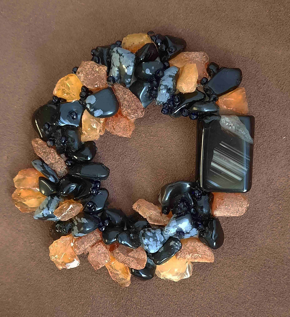 Основа украшений - натуральная кожа, камни и бисер крепятся специальным клеем.